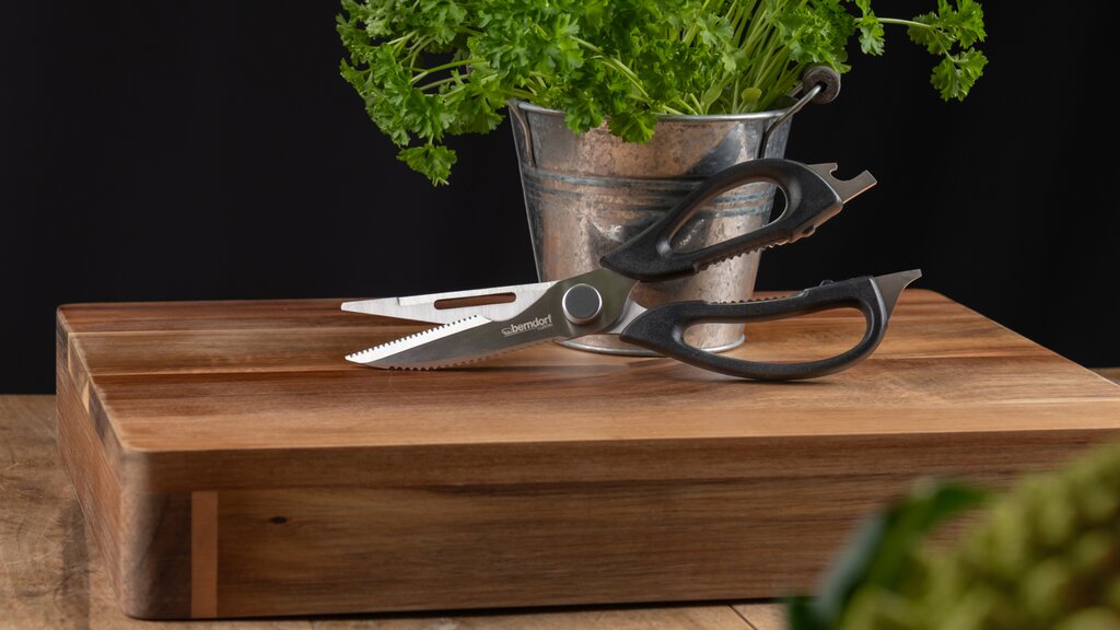 Ob beim Schneiden von Kräutern, Öffnen von Verpackungen oder Trennen kleiner Knochen – die Berndorf Edelstahl Multifunktionsschere überzeugt durch Vielseitigkeit, Robustheit und höchste Hygienestandards. Zusätzlich hilft die Multifunktionsschere bei einer Vielzahl alltäglicher Küchenaufgaben: Entfernen von Fischschuppen, Schälen von Gemüse, Öffnen von Flaschen und Dosen oder Knacken von Nüssen – diese Schere ist der perfekte Allrounder für Ihre Küche. Dank ihres durchdachten Designs lässt sich die Schere mühelos auseinandernehmen und besonders gründlich reinigen – ideal für eine hygienische Küchenpraxis. Der ergonomisch geformte, rutschfeste Griff sorgt für komfortables Arbeiten und sicheren Halt – auch bei längerer Anwendung.