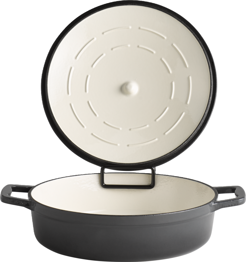 Gusseisen emailliert, Deckelgriff aus Edelstahl, inklusive Deckelhalter, geeignet für Backofen