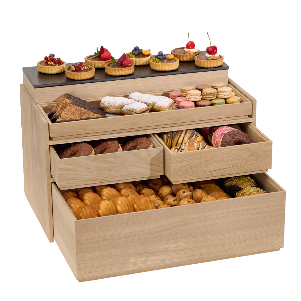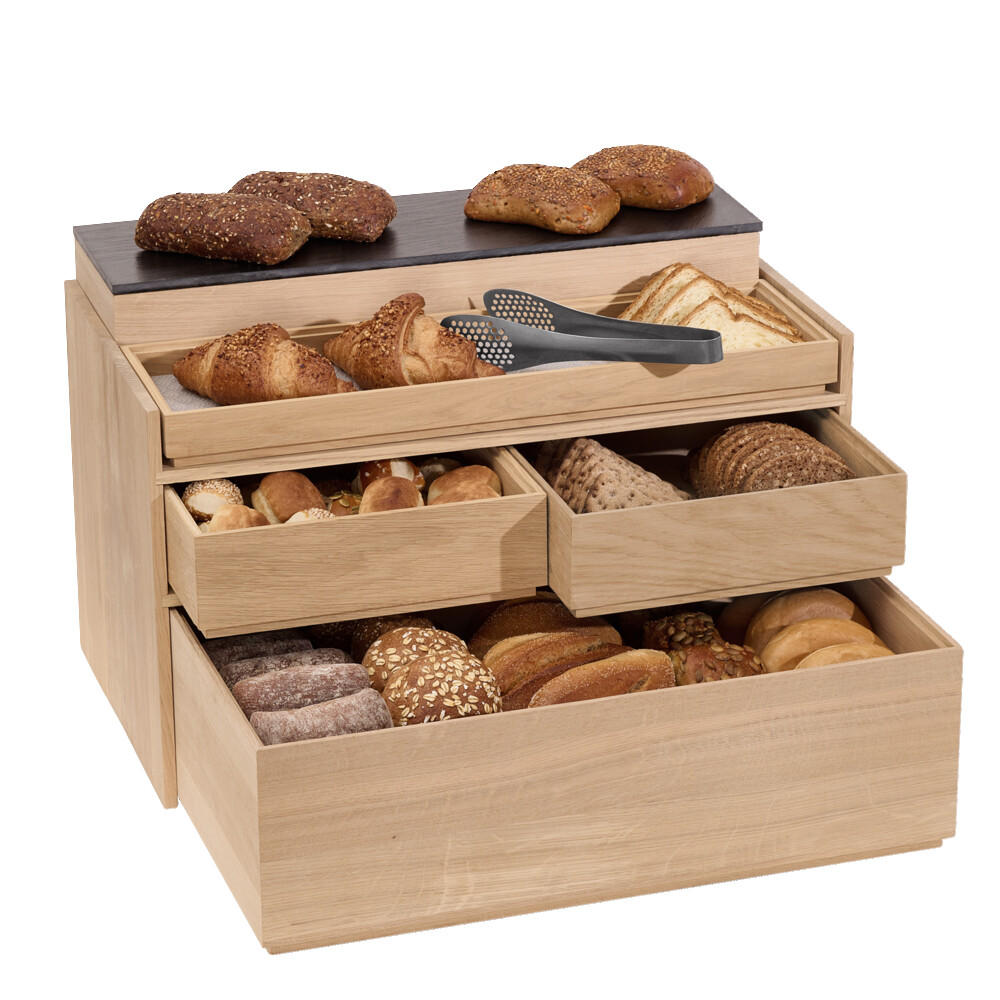 Auf Gastronorm-Grössen basierende, stapelbare Boxen und Tabletts bilden das Herzstück des innovativen und erweiterbaren Buffetsystems, das zahlreiche Kombinationsmöglichkeiten nicht nur innerhalb des VALO Sortiments zulässt, sondern auch mit vielen weiteren APS Produkten. Geeignet für die vielseitige Speisenpräsentation ist VALO somit ein universelles System, das mit seinem umfangreichen und multifunktionalen Zubehörsortiment Lösungen für alle Anforderungen bietet.