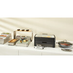 Pulverbeschichtung Schwarz, Bodenmass: 47,5 × 27 cm, passend für Einsätze bis Tiefe 10 cm, intelligentes Kondenswasserrücklaufsystem, Bügelgriff, Glasdeckel mit Bremse abnehmbar