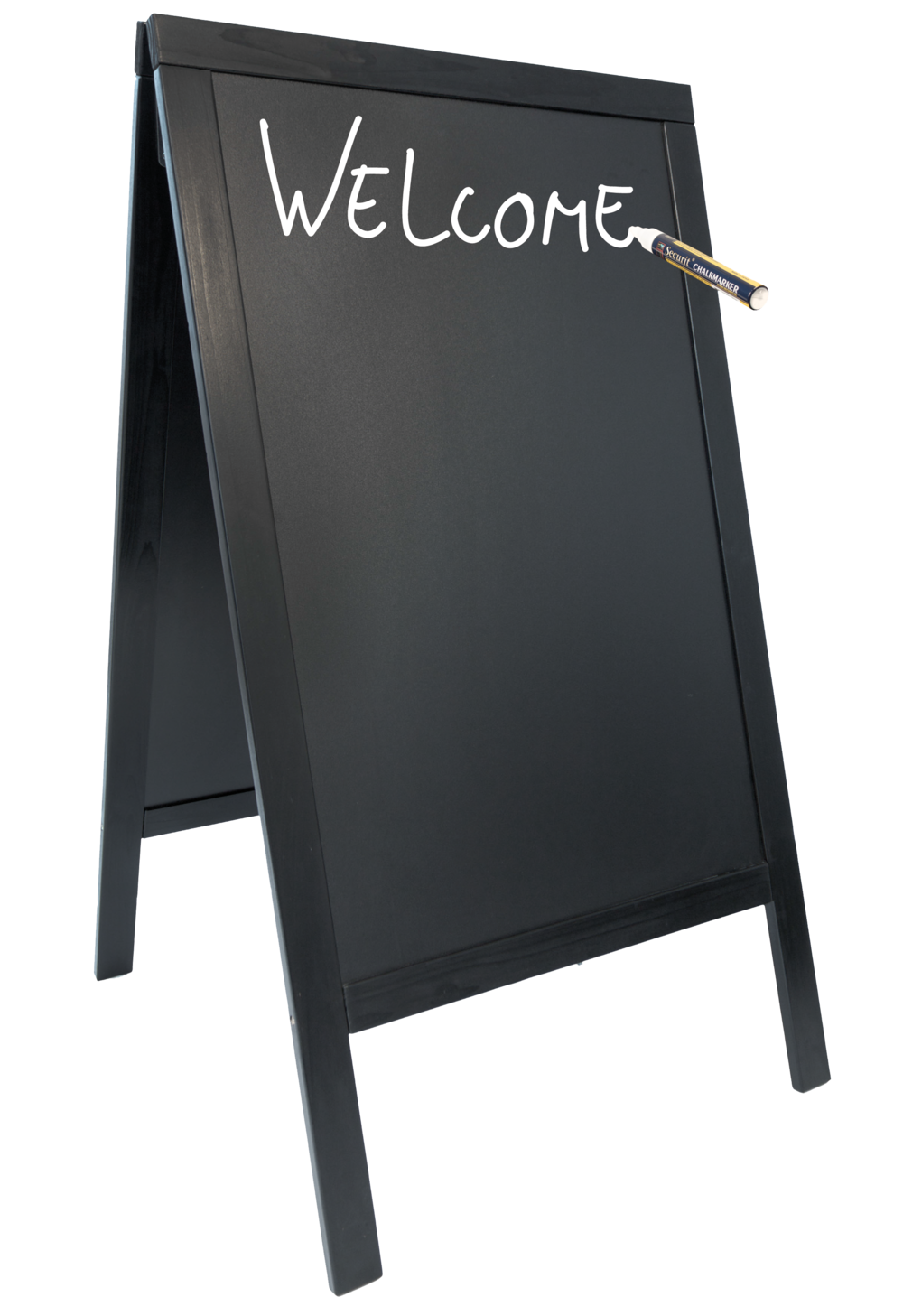 aus lackiertem Kiefernholz, mit Tafel aus schwarzem PVC Kunststoff, wetterfest, mittelschwere Qualität