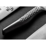Der ergonomisch geformte Griff mit Rautenmuster bildet einen nahtlosen Übergang mit der formschönen satinierten Klinge. Die Kochmesser sind komplett aus rostfreiem Edelstahl gefertigt und sorgen für ein angenehm leichtes, sicheres Handling und optimale Hygiene.