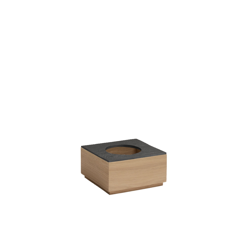 4-teiliges Set, bestehend aus: Holzbox GN 1/6, Einsatz aus EPP, Kühlakku aus PE, Naturschieferplatte GN 1/6 mit Ausschnitt (Ø 10,5 cm)