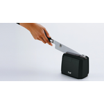 für Damast und Stahlmesser Der Messerschärfer von Kai schleift mit 2 keramischen Schleifsteinen jedes Stahlmesser scharf. Mit schlichtem Design überzeugt der Messerschärfer überall. Technische Daten: Stromversorgung: 230 V / 50 Hz Stromverbrauch: 60 Watt Kurzzeitbetrieb: 2 Minuten Abmessungen: 138 x 111 x 105 Gewicht: 875 g Schleifstein: Alundun Inklusive austauschbarer Poliereinheit