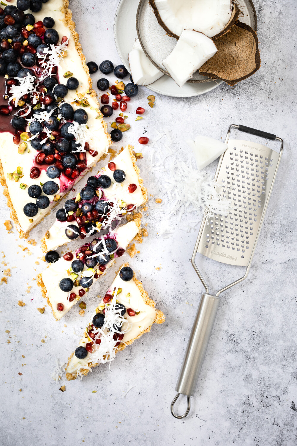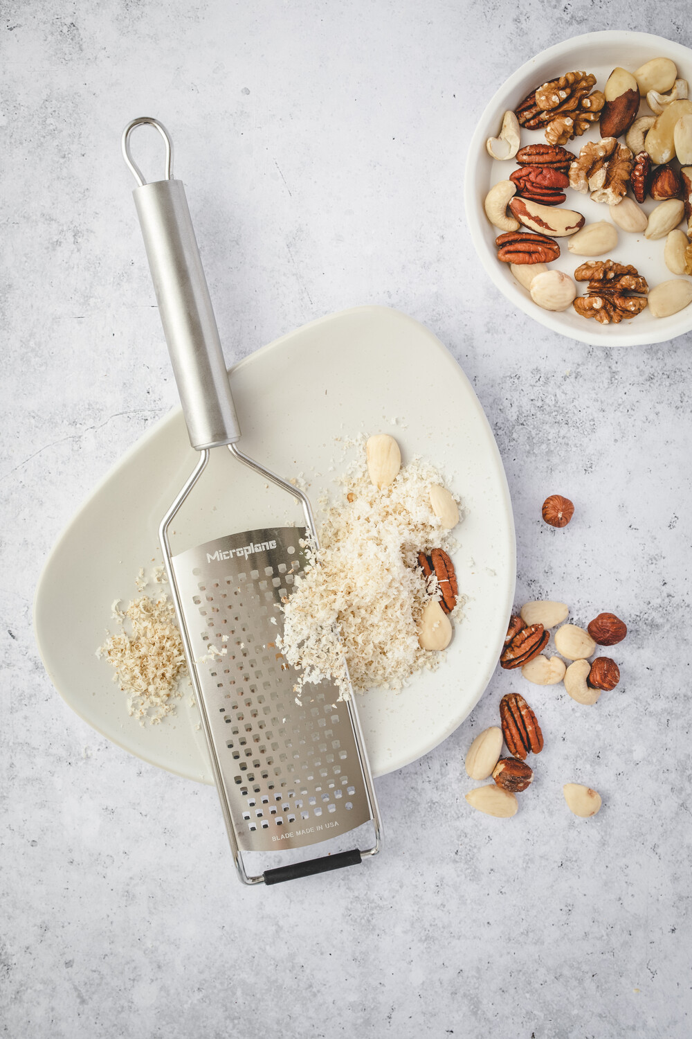 Mit der groben Klinge schneiden Sie Käse, Karotten, Knoblauch, Ingwer, Kokosnuss, Zwiebeln uvm. schnell und präzise etwas gröber, als mit der feinen Klinge.
