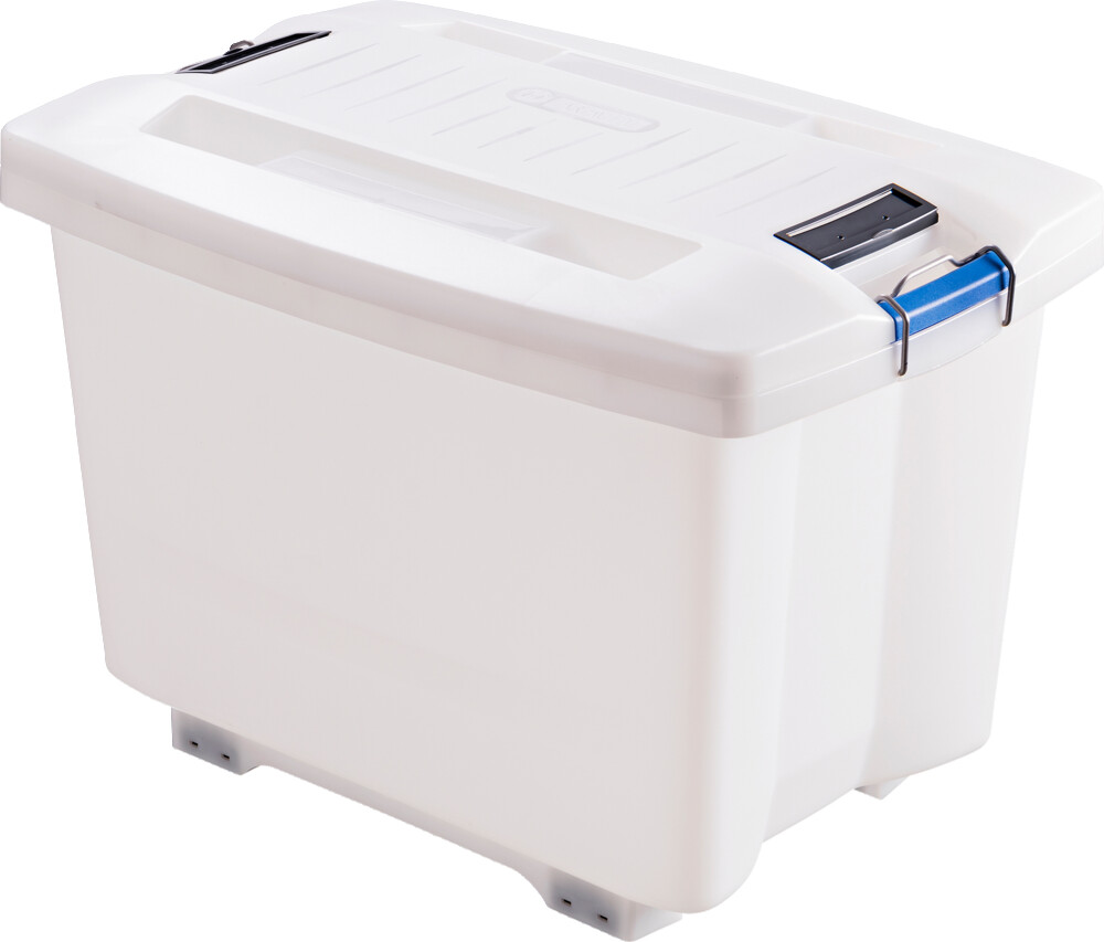 Bac avec couvercle pour la conservation et le transport des produits alimentaires avec une forte teneur en eau, tels que les fruits et légumes. L'ouverture d'aération garantit une circulation d'air durant le transport et réduit la condensation. Roulettes résistantes en polyamide. Empilable avec couvercle.