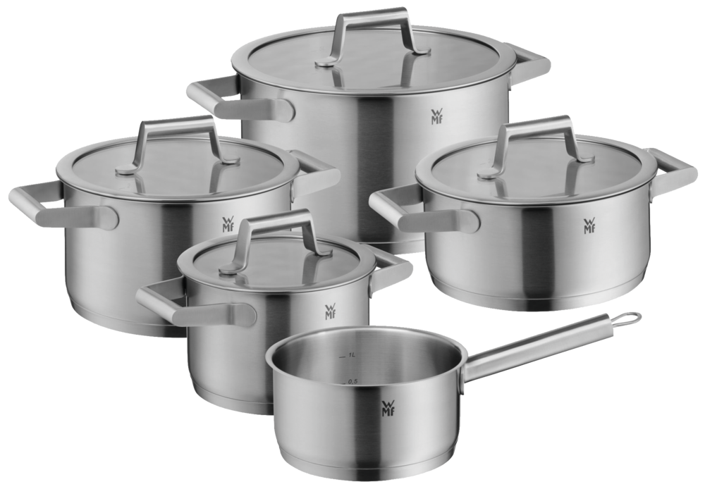 Comprend 3 casseroles à viande (16 cm / 20 cm / 24 cm) avec couvercles Comprend 1 cocotte (20 cm) avec couvercle Comprend 1 casserole à manche (16 cm)
